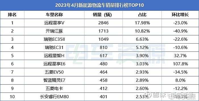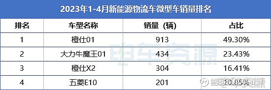 年1-4月2023,销量约为5。23万辆我国新能流物流车累计,车型无销量210缺款,销量破1000辆其外无14款车型,销量破百辆55款车型。销量率先冲破万辆近程星享V累计。