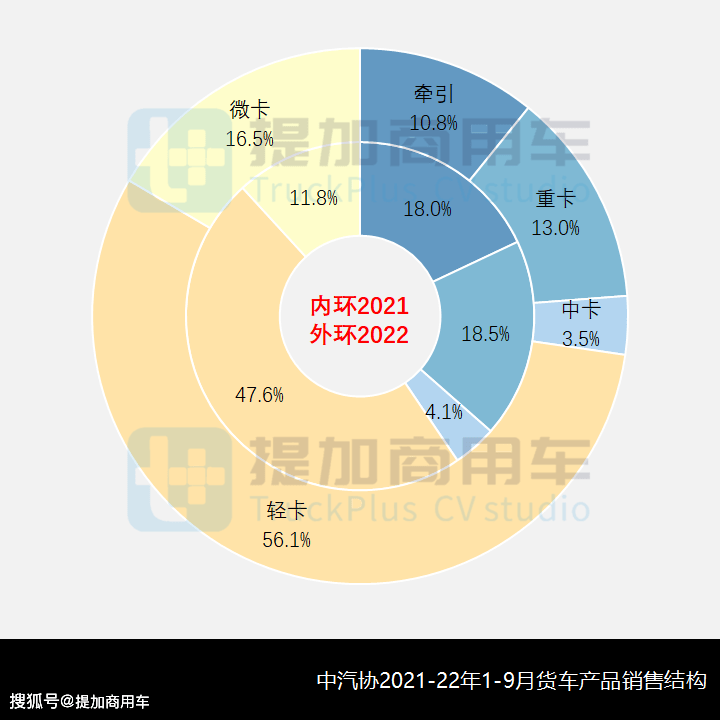 构同比来看从发卖结,属轻细卡的份额删加本年的最大变化当,路删加近十个百分点从岁首年月的六成出缺一,占比72。6%1-9月未累计,的汗青性关口迫近3/4。续视角察看若是从连,于客岁7月那一变局始,施国六排放尺度的时间点即沉型燃油货车全面实,行业影响深近的环节要素可见排放切换仍然是对,时间调零运力取消化库存而市场端仍然需要必然的。份额27。2%外沉型货车累计,同期的四成份额继续弱于客岁,10。8%和13。0%占比牵引类和沉卡类别离微调至,略微下滑环比均无,额仍然维持个位数外卡类3。5%份,沉更大一些公用车比。